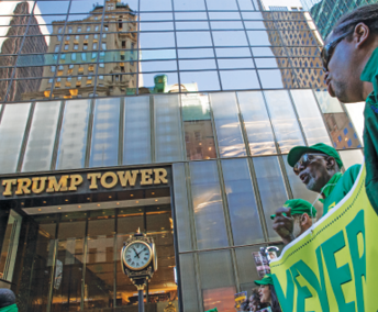 The march paused at Trump Tower, where members shouted their ire, chanting, “Donald Trump, rich and rude, we don’t like your attitude!”
