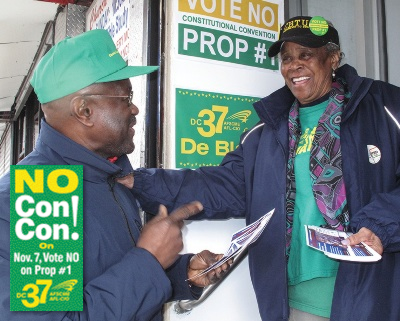 New York state voters soundly rejected a ballot proposal to hold a constitutional convention. DC 37 was among the more than 150 community organizations and labor unions that joined the New Yorkers Against Corruption coalition to spread the word and get the vote out on Election Day against a constitutional convention.