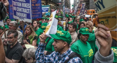 05_CUNY_rally_lee Hundreds demand better funding and new employee contracts at CUNY during a March 12 demonstration.