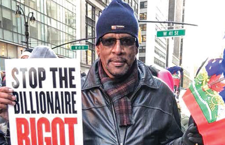 A visible presence at labor rallies and demonstrations for decades, Cuthbert joined Haitians and other New Yorkers in peaceful protest Jan. 15 against President Trump’s most recent slur on immigrants. Dickenson used social media to advance the rally’s message and share photos of the huge turnout.