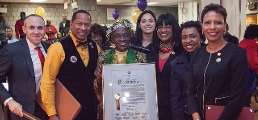 The union, its BHM committee with co-sponsor Local 372, celebrated Ms. Roberts’ 90th birthday with special guests former NYC Mayor David Dinkins, AFSCME President Lee Saunders, state AFL-CIO leader Terry Melvin, Comptroller Scott Stringer, Public Advocate Letitia James, local labor leaders, members of the City Council and state legislature, and nearly 400 union members and retirees.