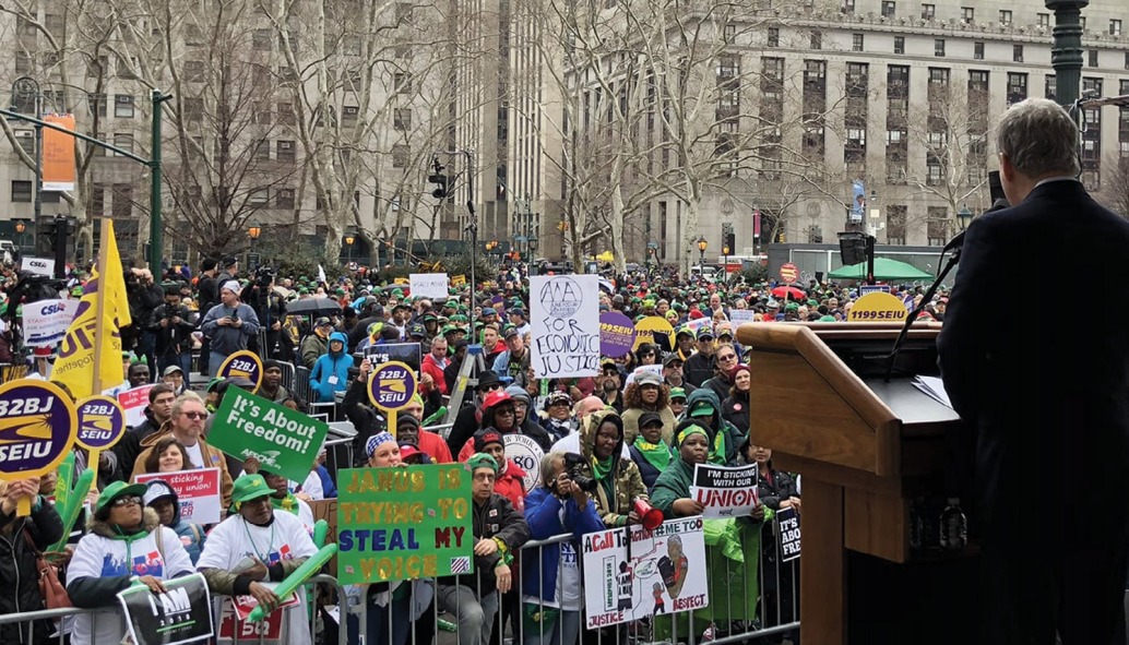 “New York City will stand with labor, and demand the Supreme Court respect the rights of unions all over this country,” he said.