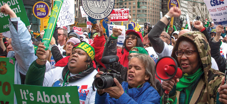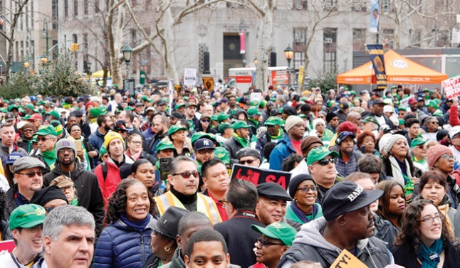 This was the chant of thousands of protesters rallying at Manhattan’s Foley Square on Sat., Feb 24. At front and center were many DC 37 members standing up in support for working Americans at the Working Peoples Day of Action. The New York rally was the crown jewel of a number of rallies and protests held nationwide before oral arguments were heard in the U.S. Supreme Court in the Janus v. AFSCME case on Feb. 26.