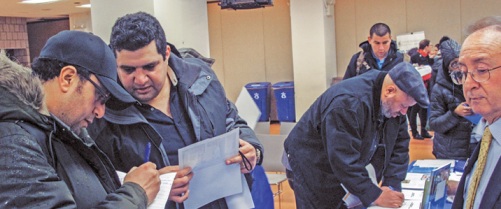 Members fill out forms at the union’s Affordable Housing Seminar on Feb. 22.