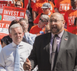 Union leaders and activists returned to City Hall on May 19 to call upon city lawmakers to add $24 million for operating expenses and $300 million for capital projects in next year’s budget for public libraries.