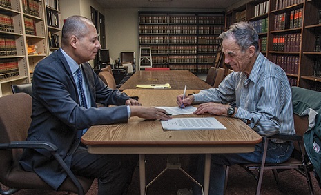 Sr. Attorney Stephen Shepard at a will signing with a member.