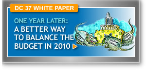 DC 37 put forward A Better Way to Balance the Budget in 2010, an update one year later, which reported how the recession had cut revenue and driven NYC’s human needs to record levels while no study had been done of the city 18,000 wasteful contracts.