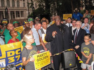 Hours before New York City schools reopened for 1.1 million students, Dept of Education Local 372 and a coalition of grassroots groups and elected officials rallied outside City Hall to celebrate a major public safety victory after Gov. Cuomo ordered the return of traffic cameras in school zones.