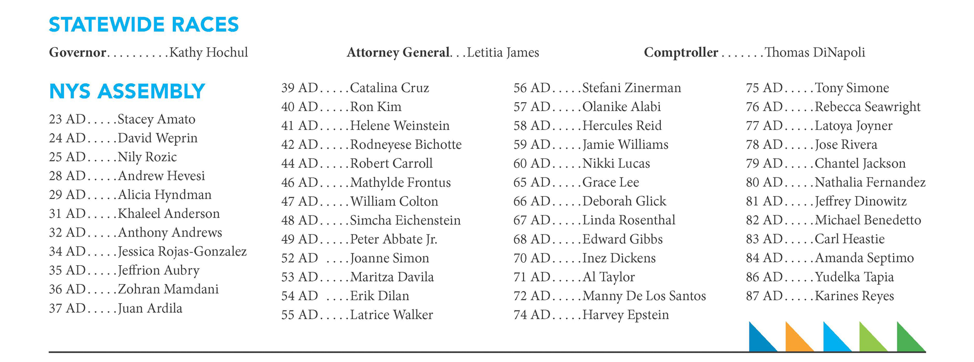 DC 37’s list of endorsed NYS Assembly candidates includes many incumbents who have a proven record as allies of the union and its 150,000 members and 50,000 retirees. Early voting runs from June 18-26.