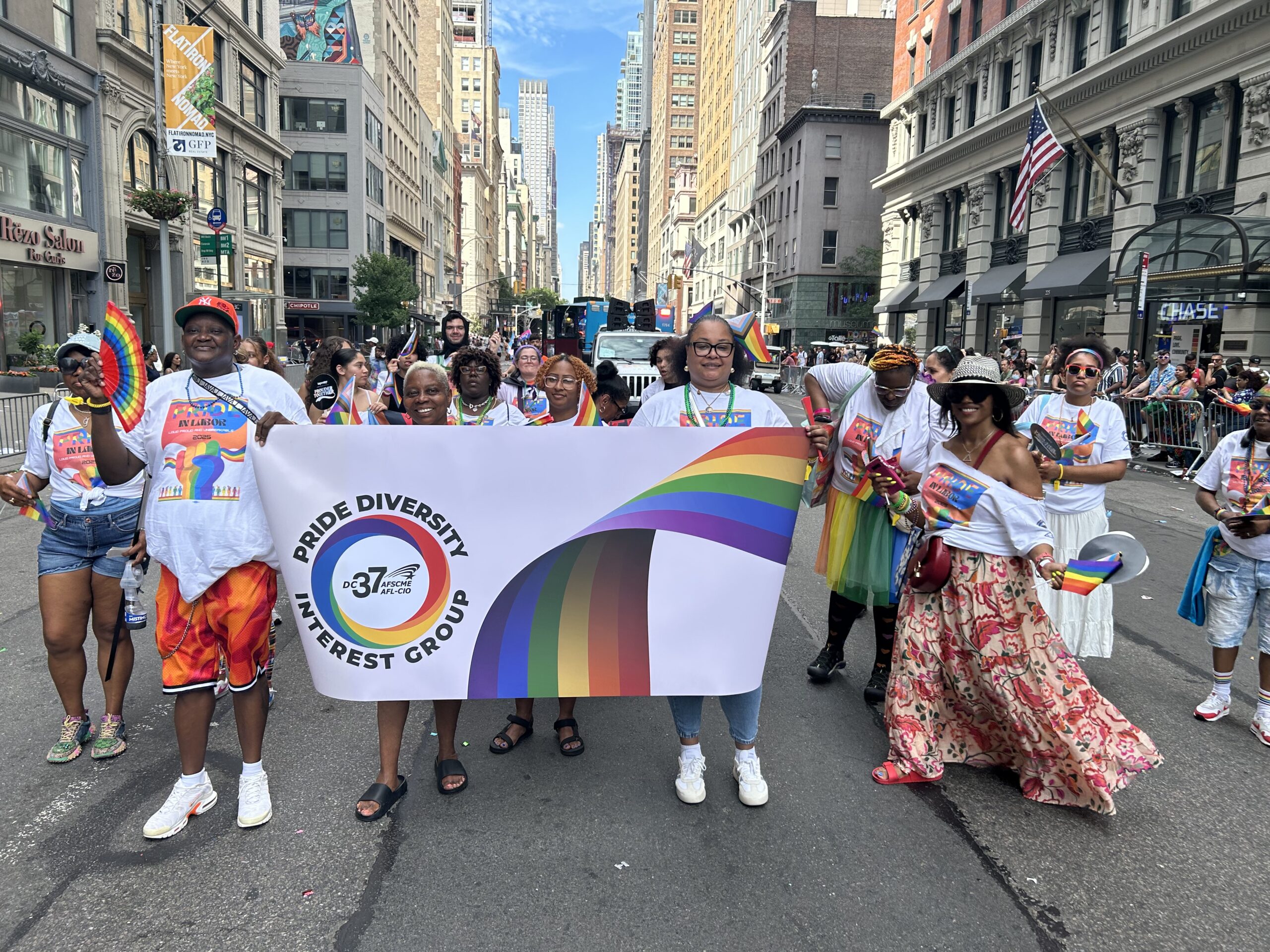 DC 37 honored queer communities at the Pride Diversity Interest Group (PDIG) “Pride in Labor: Loud, Proud, and Unbreakable” Celebration on June 27. Andrew Douglas, who previously led SSEU Local 371’s LGBTQIA Committee, now serves as DC 37’s PDIG Committee Chair. DC 37 members celebrated Pride Month at the union’s headquarters amid a flurry of colorful decorations, a packed dance floor, and a fierce ballroom performance. Dancers of “The Precious 5” dipped, dropped, duckwalked, and vogued. The Committee also turned out for the NYC Pride Parade on June 29 to uplift the impact of queer people within the labor movement.