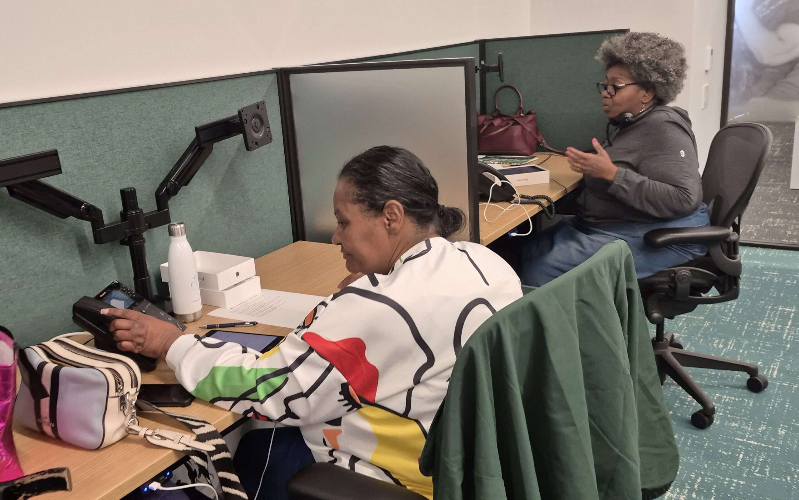 Joyce McClammy, a member and Vice President of Local 205 Day Care Employees, brought her leadership skills, union activism, and positive spirit to the phone bank at DC 37 headquarters.