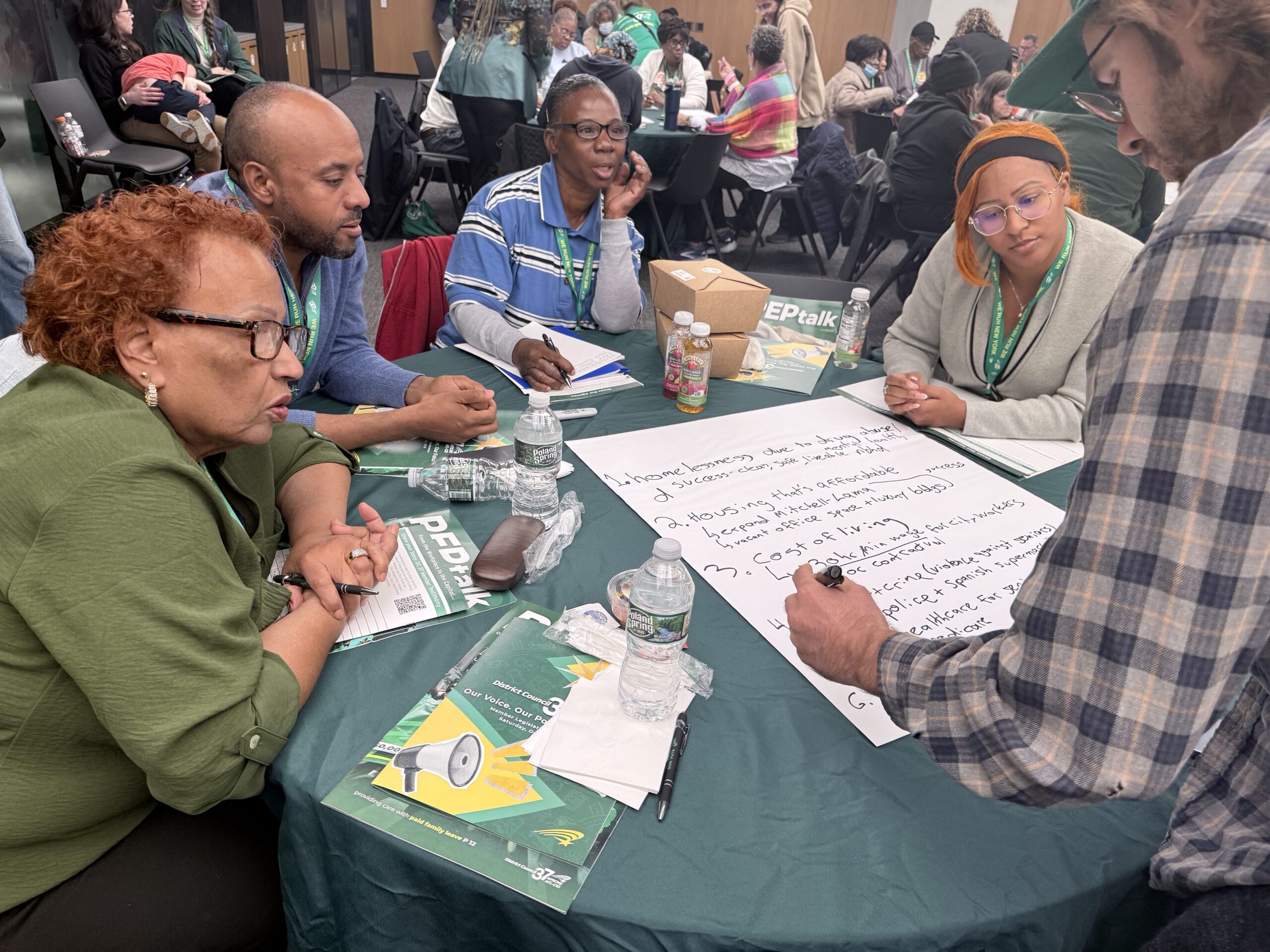During the conference, participants at each table were asked to think through community and workplace issues and brainstorm potential solutions. Attendees engaged in in-depth discussions about which issues should be resolved through legislation, such as Tier 6, or which were contractual in nature and should be resolved through collective bargaining, such as wage increases and filling vacancies.