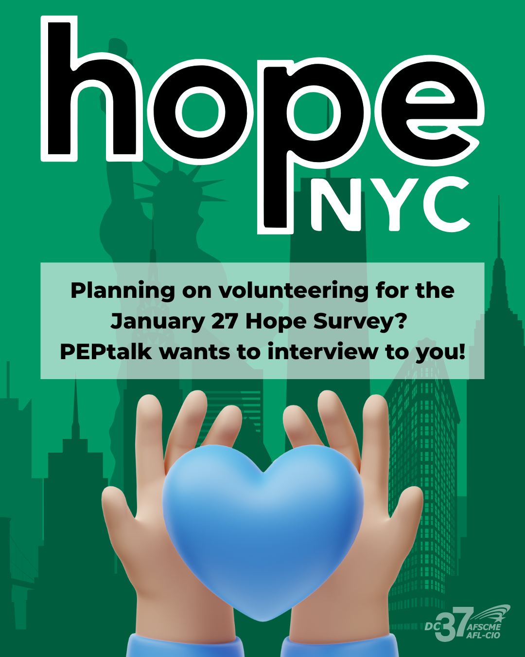 Note: If you plan to volunteer and would like to be featured in PEPtalk to tell the story of your experience, please contact us at communications@dc37.net.