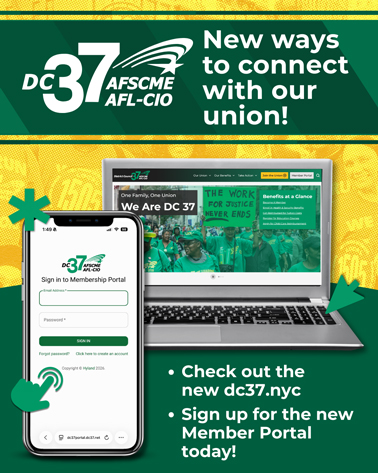 Exciting news! The union has launched a redesigned website and new member portal to increase your access to member services and benefit information. Both can now be accessed via desktop or mobile at dc37.net and dc37.nyc.