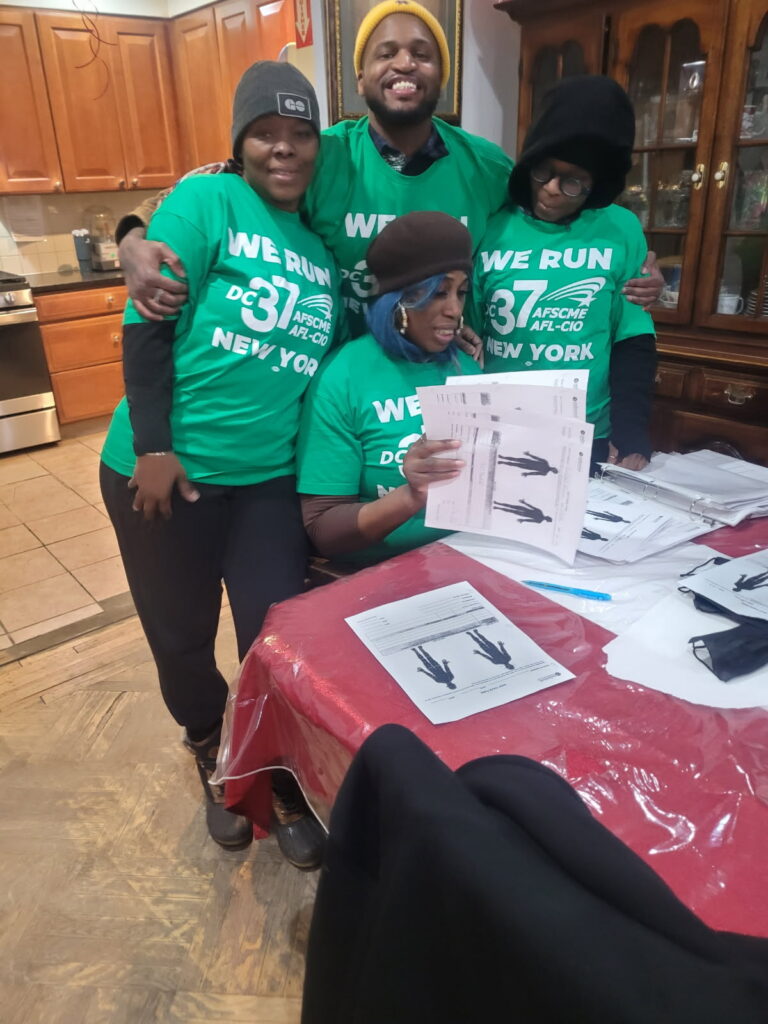 The Jan. 30 workplace action showcased the members’ solidarity, with 90% of the workforce participating by wearing DC 37 green T-shirts and demonstrating their motivation as a unified group. By mobilizing, the members are expressing the power of “all for one and one for all,” which is critical to securing a contract that will meet their basic needs.