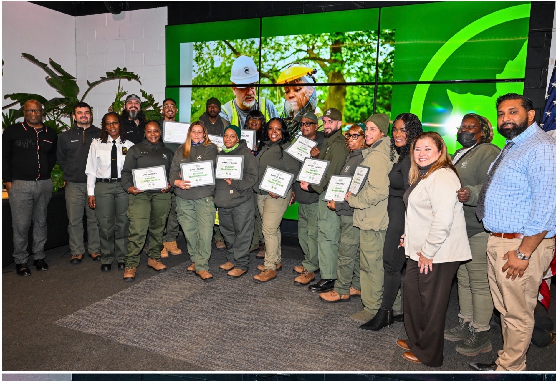 City Park Workers from Local 1505 in the first cohort of the NYC Parks Gardeners Training Program graduated on Dec. 5. The trainees participated in the 12-month program to expand their skills and knowledge of horticulture, botany, and gardening in anticipation of advancing their careers within the Parks department. Photo courtesy NYC Parks