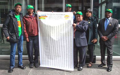 As state budget negotiations continue in Albany, District Council 37 leaders and activists today delivered to Gov. Cuomo’s NYC office the names of more than 5,000 City University supporters who have signed a petition urging state lawmakers to fully fund CUNY.